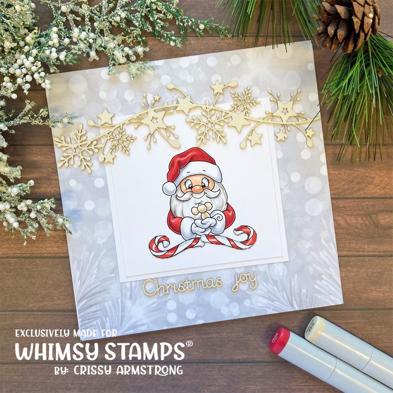 I had such fun creating this card by putting together so many little accessory images from multiple sets! The kitty is not from a Christmas set, it's from the Cat Me-Wow set, but by dressing it up in a Santa hat and adding a little Christmas candy, all of a sudden it's the purr-fect Christmas image (pun intended!). All of the sets and dies listed below, along with links - I didn't realize until the lovely Chrissy, a long time fan of Whimsy, wrote to tell me that my links were not working! I hope this does not happen again, and I am still in the midst of going back over my blog to fix them. I don't know if the problem is my older operating system, or if the problem is with Blogger linking to Share-a-sale. But what ever the reason, I will be double checking that my links are working from now on. Please drop me a line if you find a broken one, I would hate to cause more frustration.